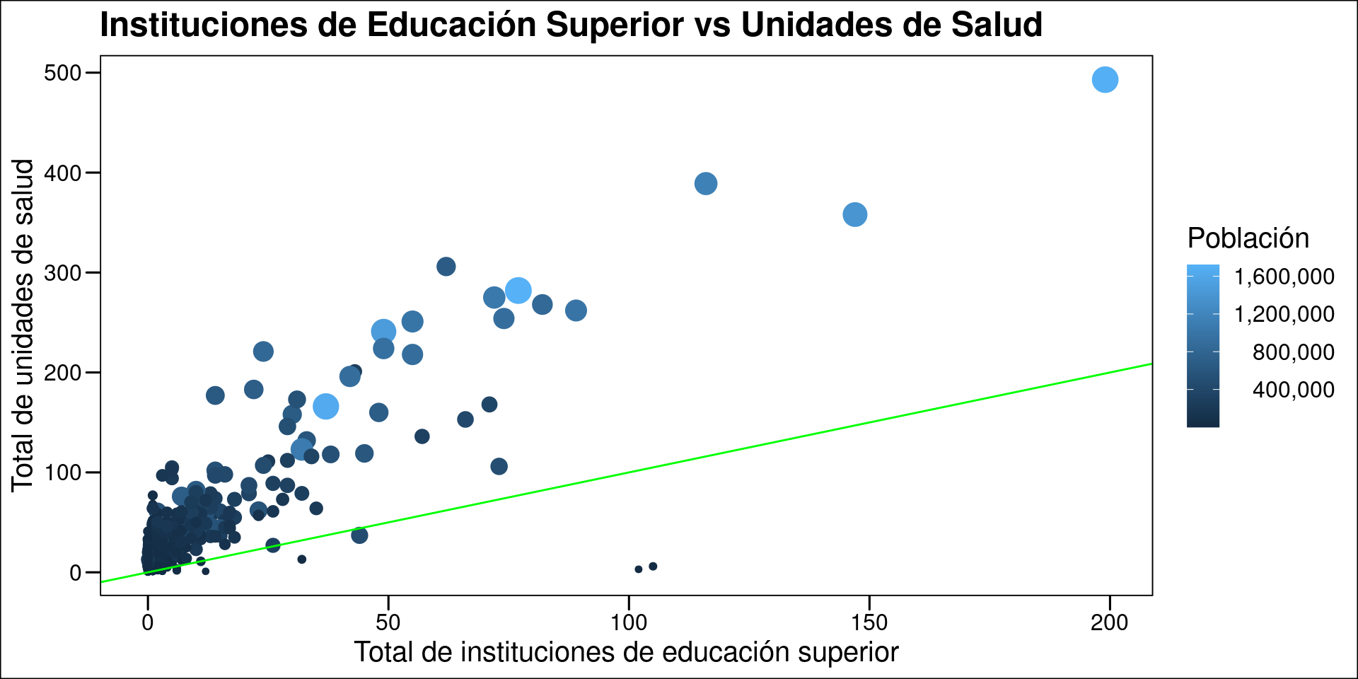 ggtitle("Instituciones de Educación Superior vs Unidades de Salud") +