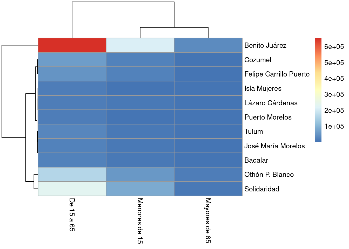 Finalmente construiremos un heatmap con los datos de la población de Quintana Roo por edades en los municipios para observar su agrupamiento