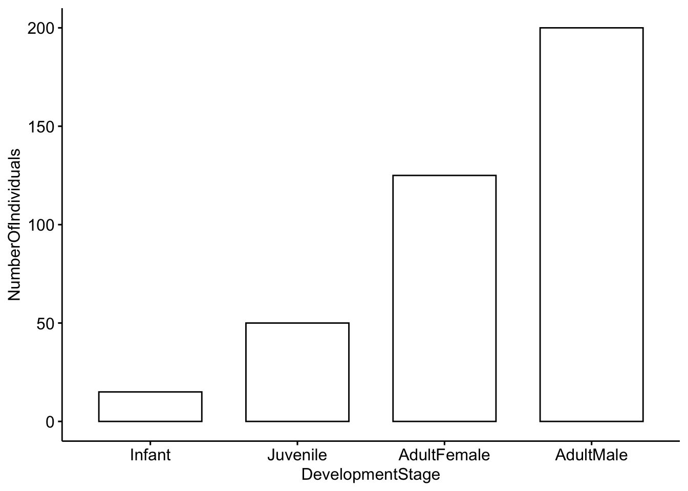 Categorical variables represent types of data that can be divided into groups. Our first example will census a simulated population of red deer to determine the proportion of individuals in different developmental stages.