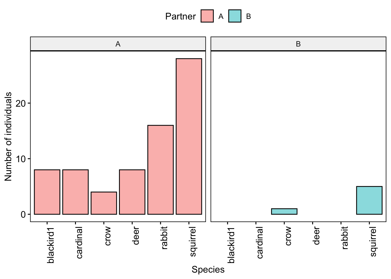 fill='Partner')+xlab('Species')+ylab('Number of individuals')
