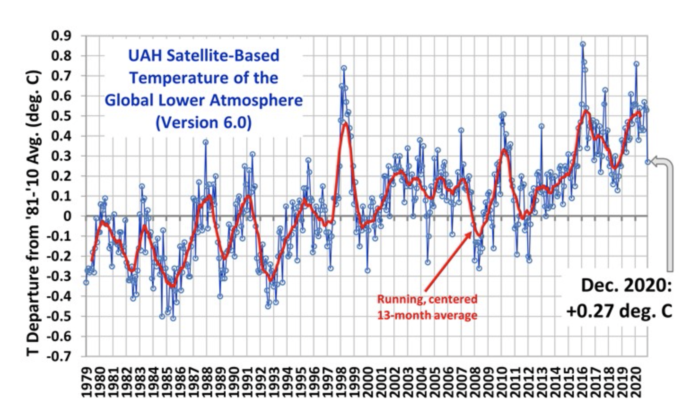 It would be disingenuous to argue that because locations in Alabama are not warming then the entire phenomena of global climate change must be false. Instead, the totality of the evidence should be considered. For example, notice that the scale is not centered at 0 and the “warming” side of the scale has to be A LOT larger than the cooling side of the scale.