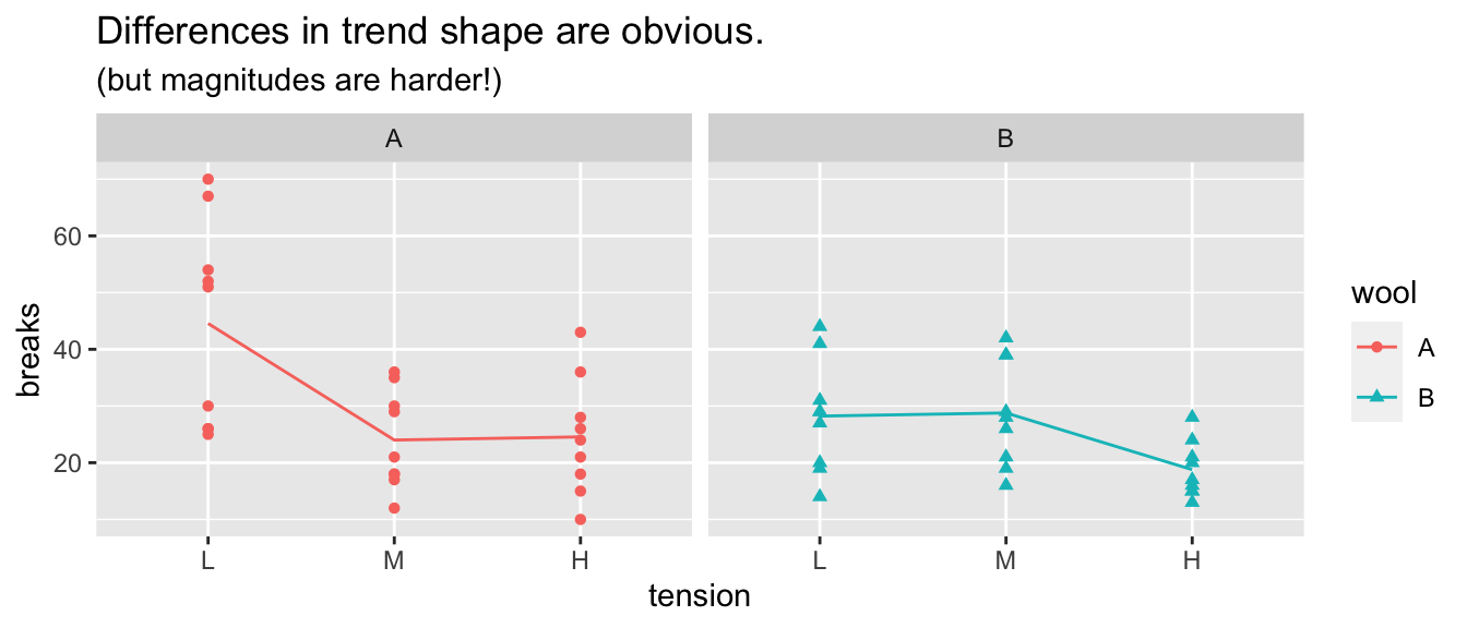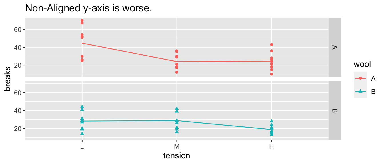 The idea is that within an enclosure we can easily compare points, but between enclosures we will consider some aggregate aspect of the graph and compare that aspect between graphs in other enclosures. Therefore if you want to compare to points, dots, (generically marks) you want them in the same enclosure.
