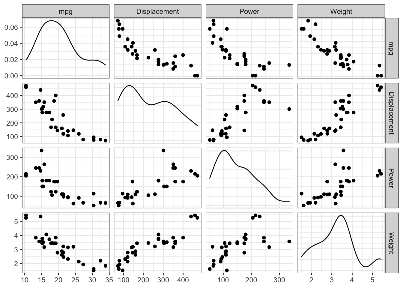 variables. One thing we could do is just make all possible pairs of scatter plots.