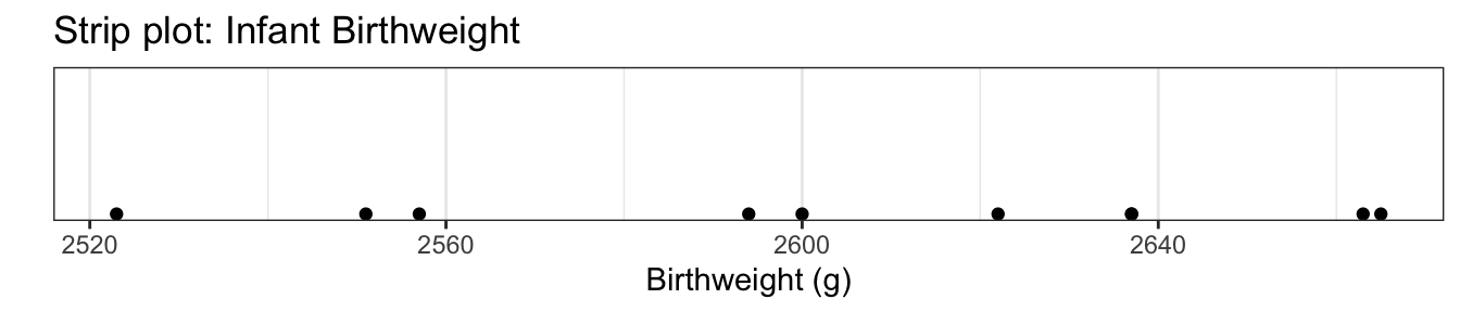 If we only have a few observations, then we can just graph them along an axis. If we have too many data points, we’ll have problems with over-plotting.