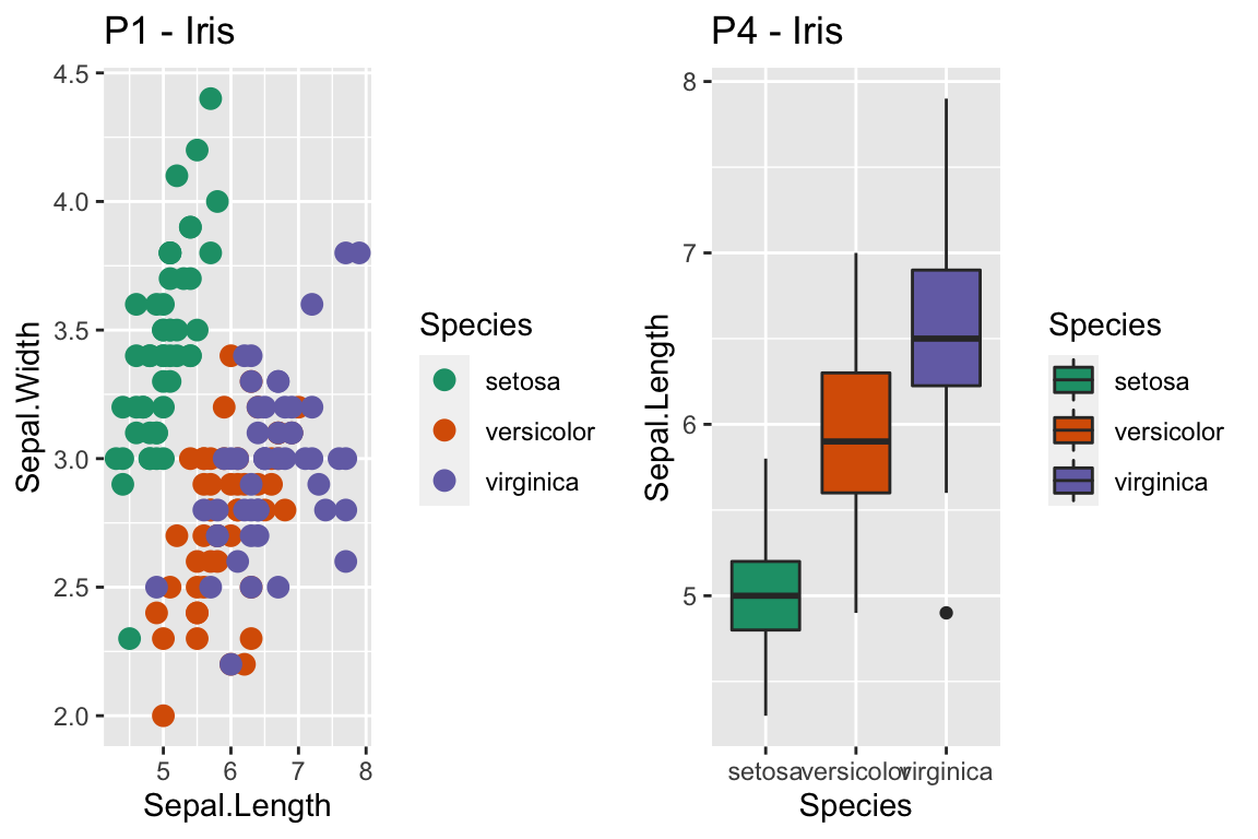 geom_boxplot() + labs(title='P4 - Iris')