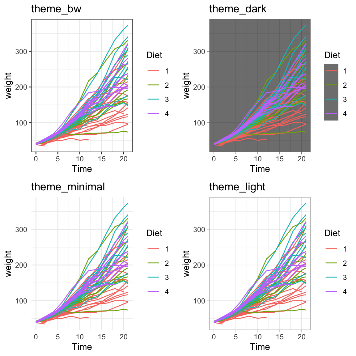 Finally, we might want to select a theme for all subsequent plots or modify a specific aspect of the theme.