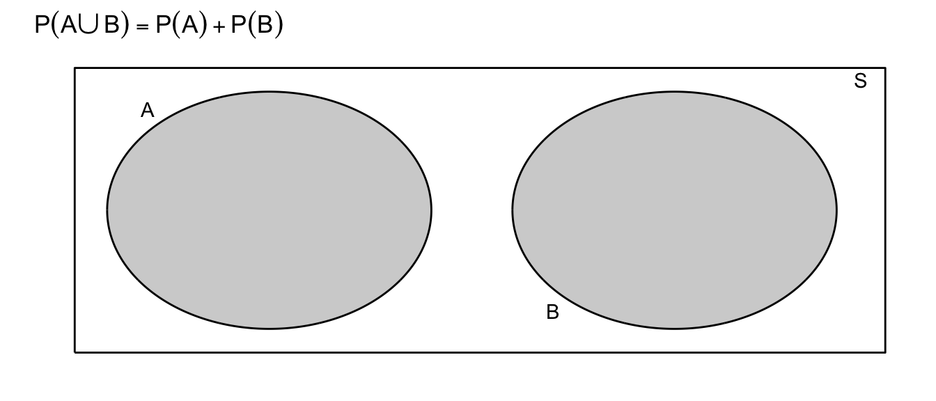 Rule: If two events are mutually exclusive, then \(P(A\cup B)=P(A)+P(B)\)