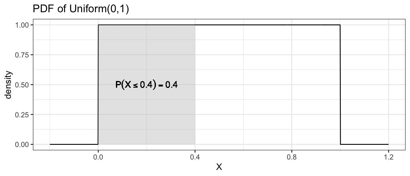 We now must resort to calculus to find this area. Or use tables of pre-calculated values. Or use R, remembering that p-functions give the area under the curve to the left of the given value.