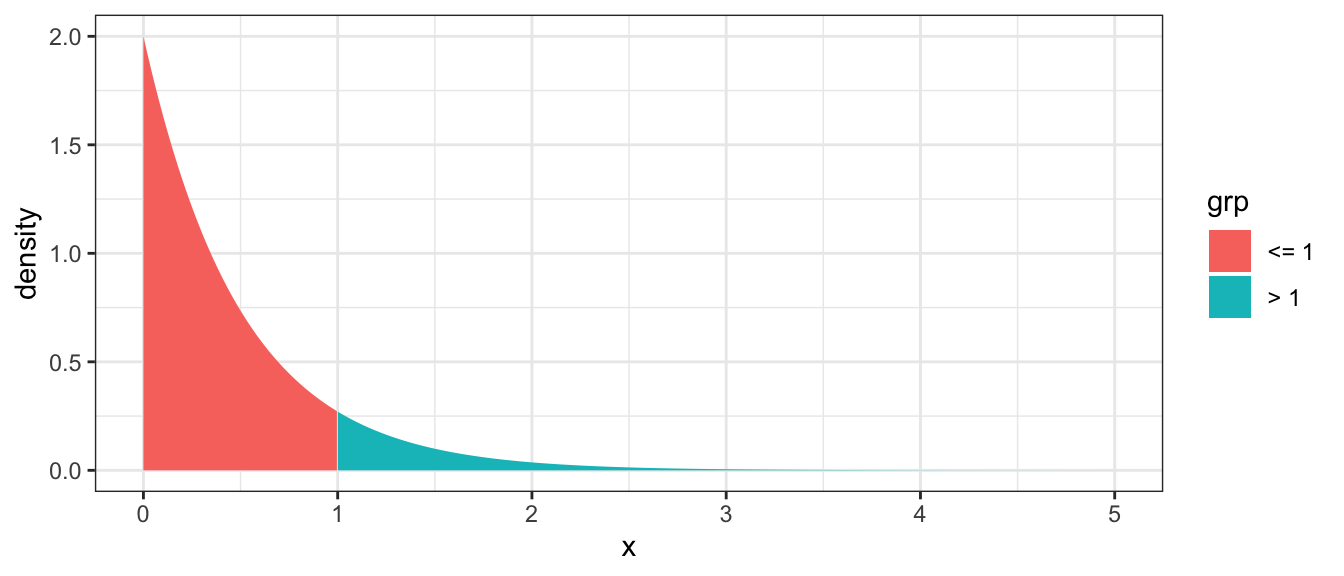 1 - pexp(1, rate=2)## [1] 0.1353353