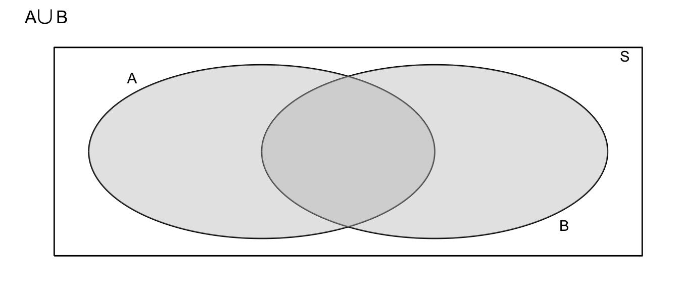 - Union: Denote the event that either \(A\) or \(B\) occurs as \(A\cup B\).