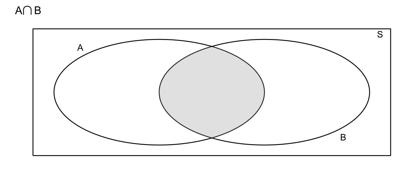 - Intersection: Denote the event that both \(A\) and \(B\) occur as \(A\cap B\)
