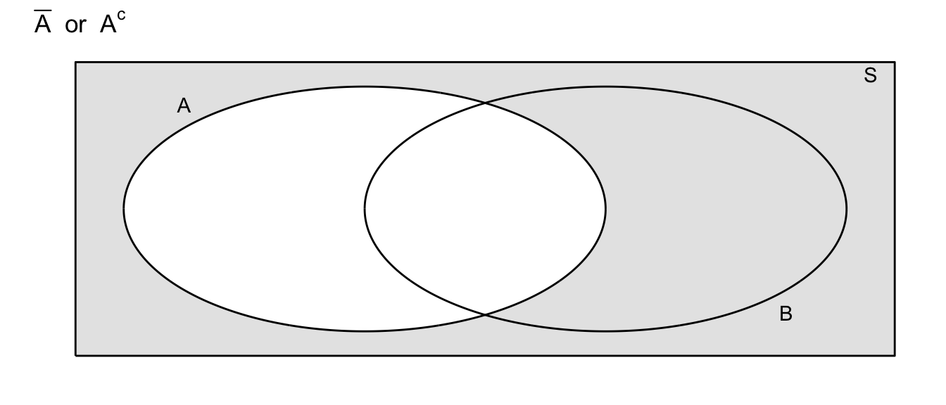 - Complement: Denote the event that \(A\) does not occur as \(\bar{A}\) or \(A^{C}\) (different people use different notations)