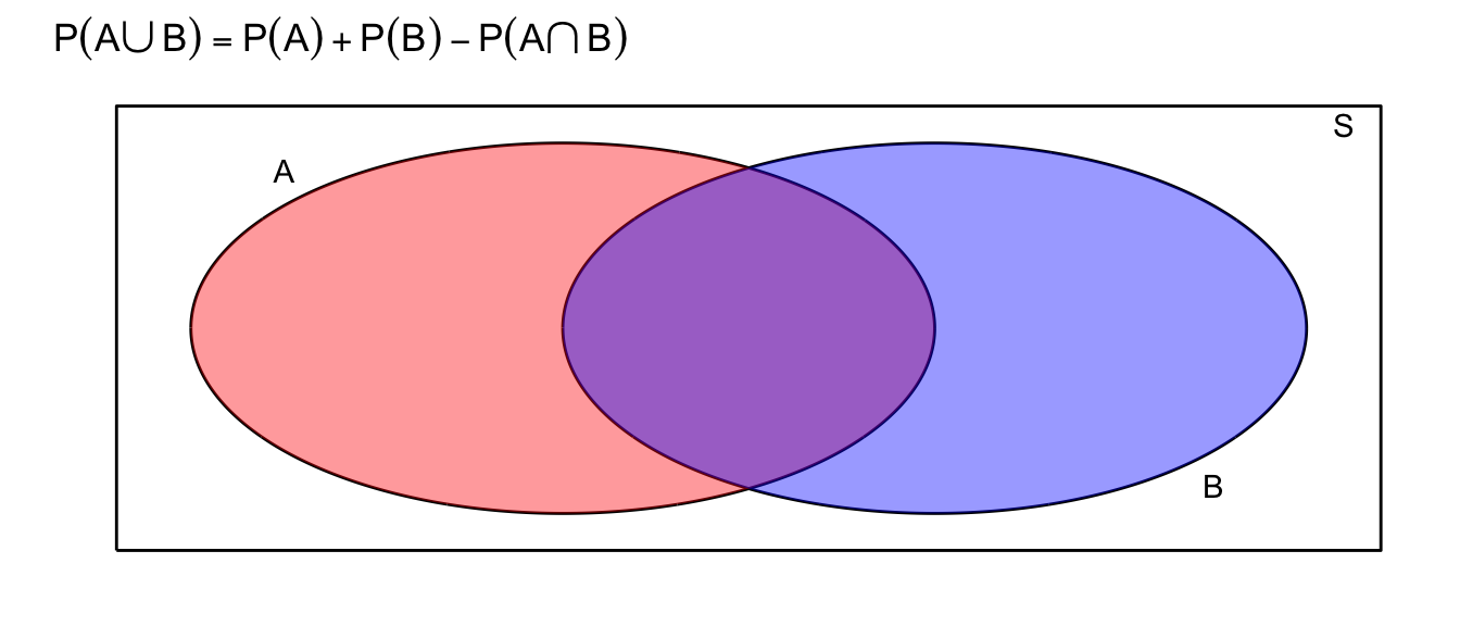 The reason behind this fact is that if there is if \(A\) and \(B\) are not disjoint, then some area is added twice when I calculate \(P\left(A\right)+P\left(B\right)\). To account for this, I simply subtract off the area that was double counted.