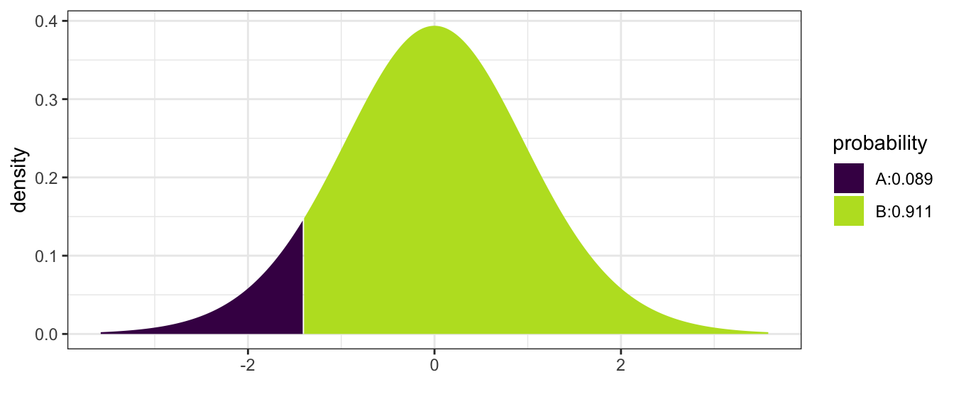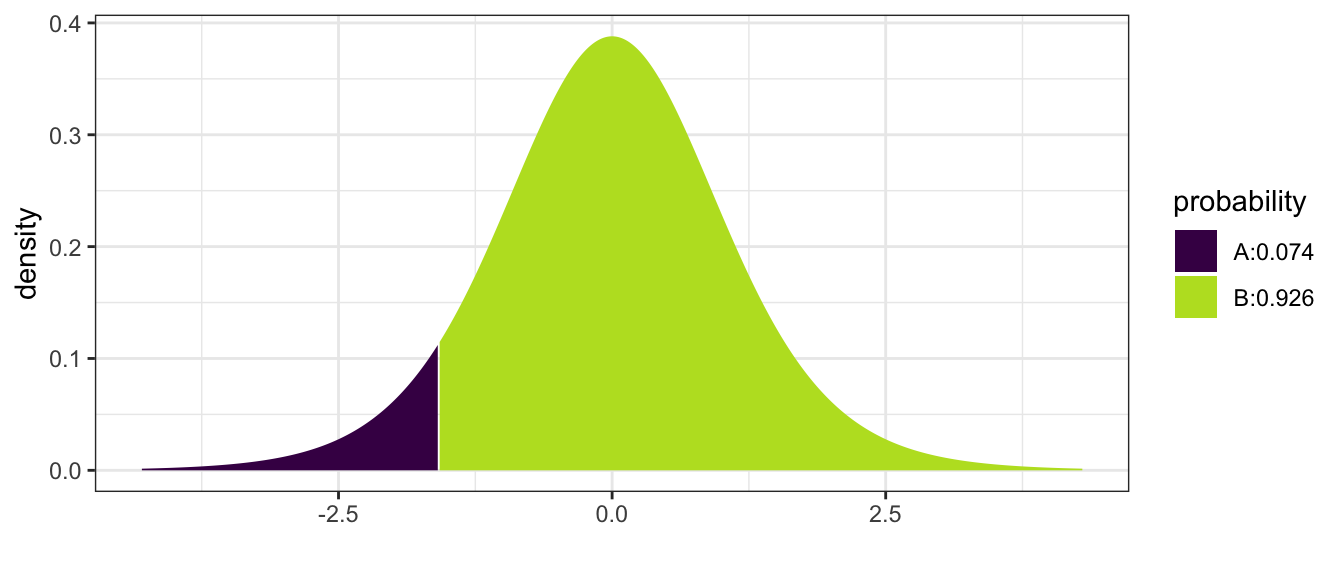 mosaic::xpt(-1.4, df=19, ncp=0 ) # With a Graph