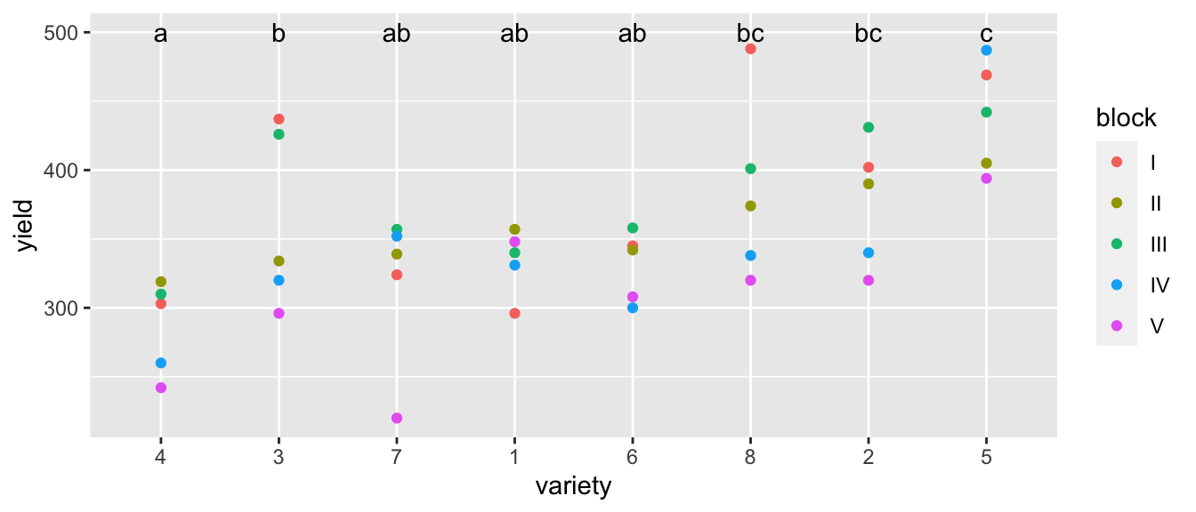 # Ignore any p-values regarding block, but I'm happy with the analysis for variety
