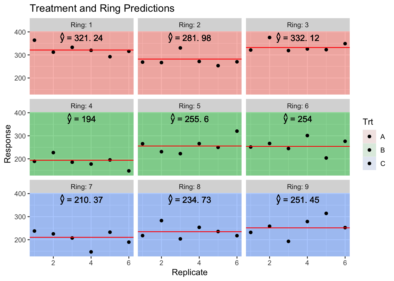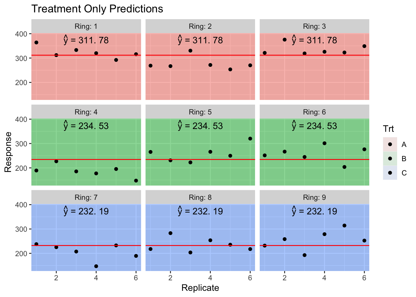 Fortunately in this case, we don’t care about the blocking variable and including it in the model was simply guarding us in case there was a difference, but I wasn’t interested in estimating it. If the only covariate we care about is the most deeply nested effect, then we can do the usual analysis and recognize the p-value for the blocking variable is nonsense, and we don’t care about it.