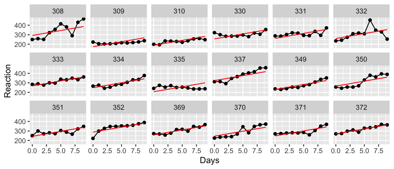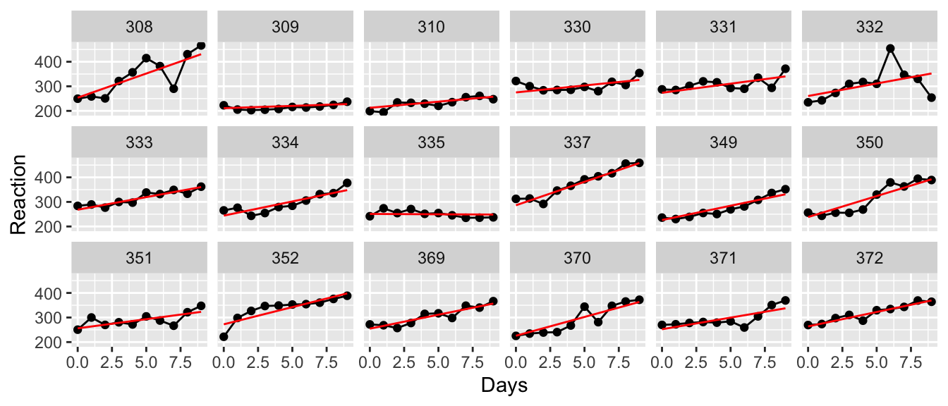## Formula: Reaction ~ Days + (1 + Days | Subject)