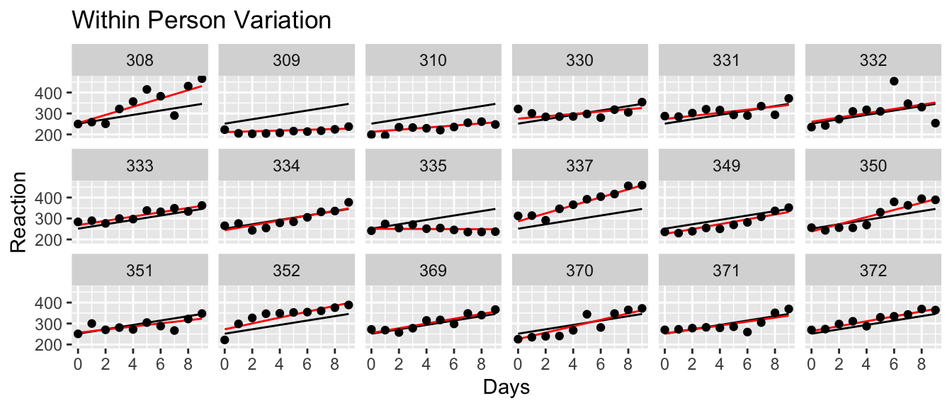 ylab('Reaction') + ggtitle('Within Person Variation') +