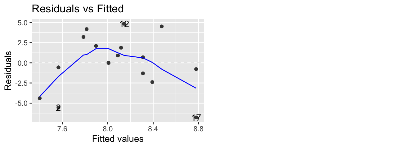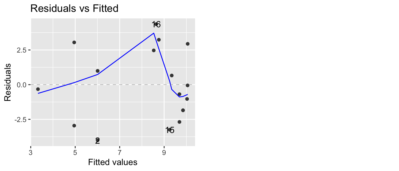 autoplot(model, which=1) # same plot using ggplot2 and ggfortify package