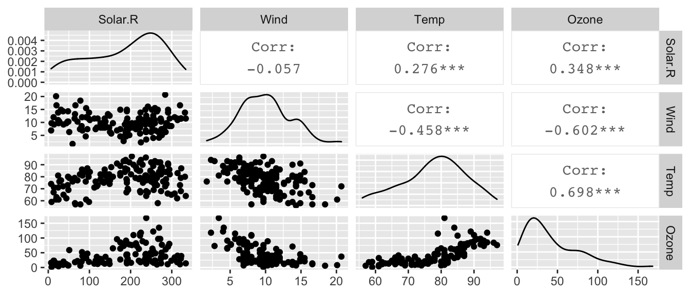 airquality %>% select( Solar.R, Wind, Temp, Ozone) %>%