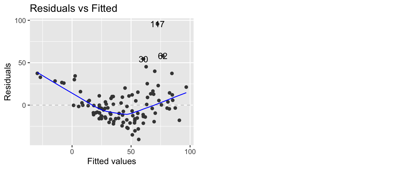 plot(model, which=1) # Base R Function: which=1 tells R to only make the first plot