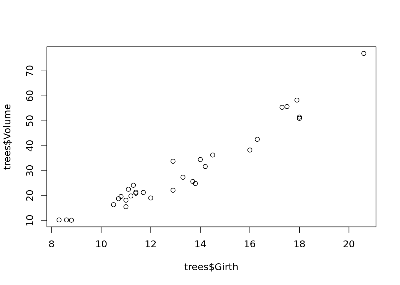 plot(trees$Girth, trees$Volume)