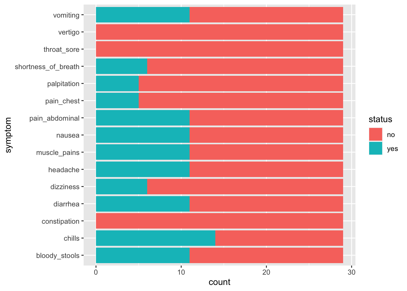 For the next few plots we are going to use symptoms and not outbreak_data, however they record exactly the same thing