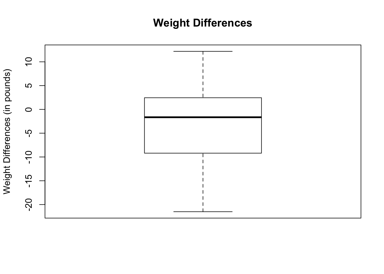 - To check for outliers, we will draw the boxplot of the weight differences. From below, the boxplot does not show any outliers.