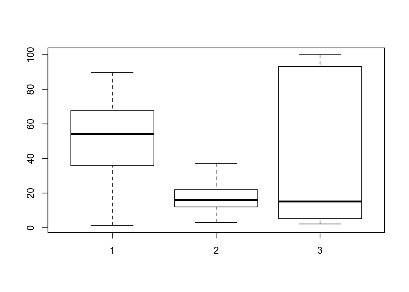 boxplot(swiss$Agriculture, swiss$Examination, swiss$Catholic,