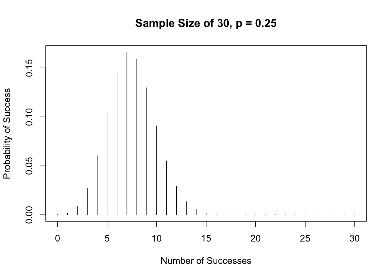 y <- dbinom(suc, size = 30, prob = 0.25)