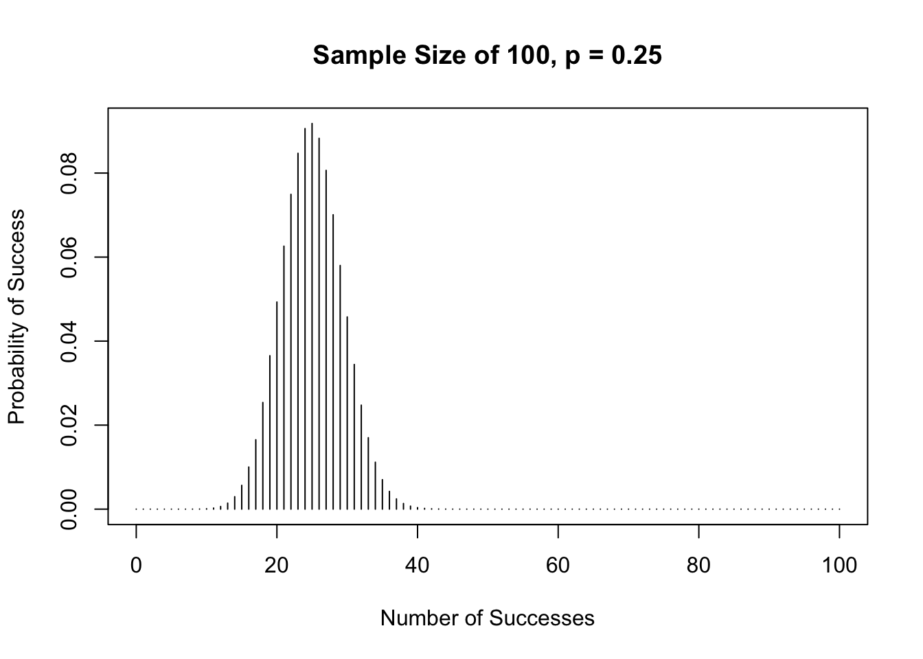 y <- dbinom(suc, size = 100, prob = 0.25)
