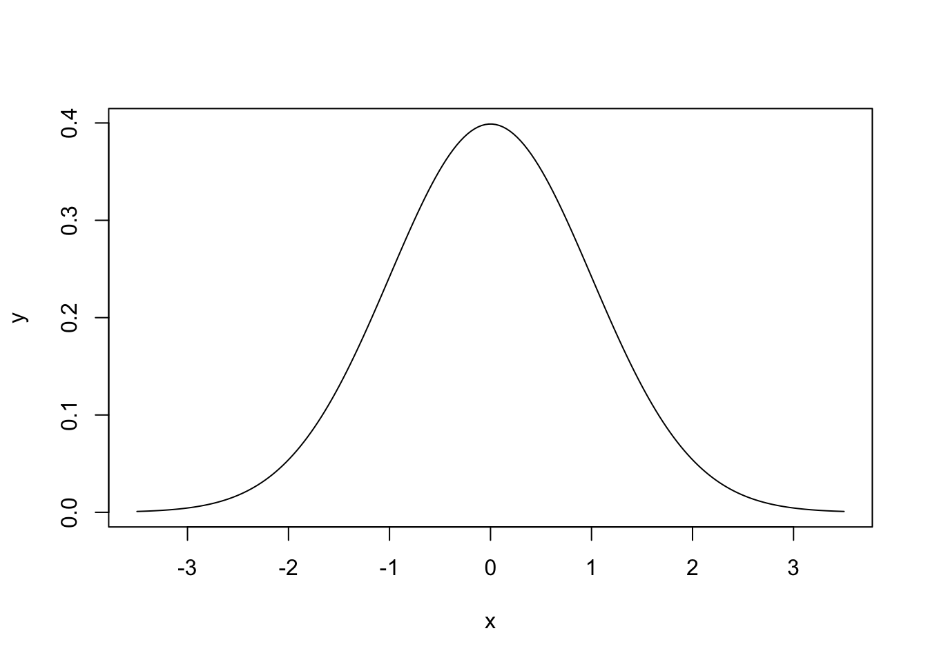 The normal distribution has a mean of 0 and standard deviation of 1. Its curve is bell-shaped, symmetric and unimodal as shown below.