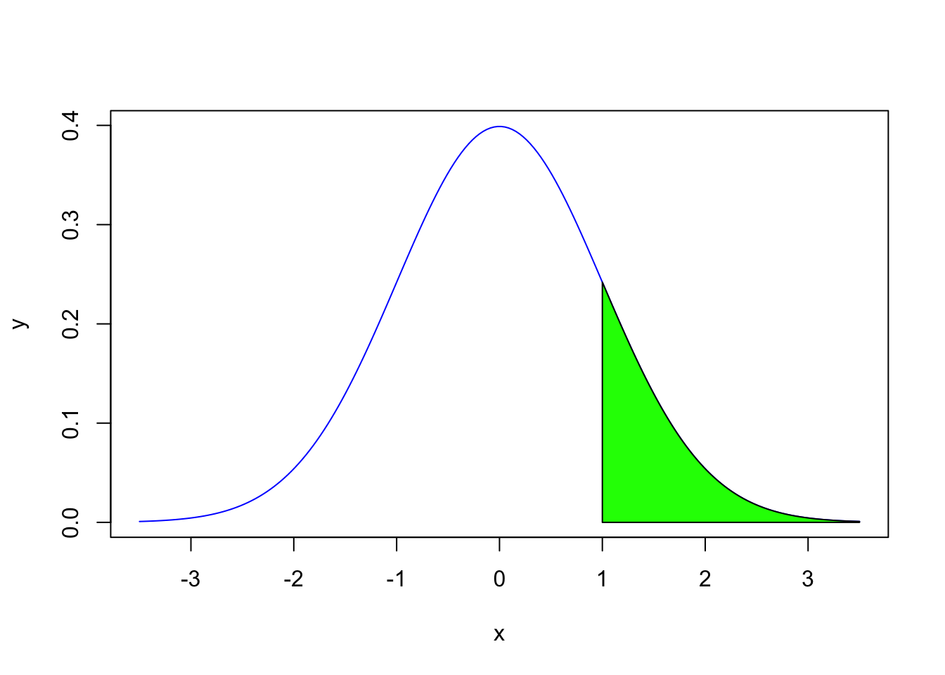 If we want the area to the right of 1 on the normal curve, there are 2 ways to go about calculating this area.