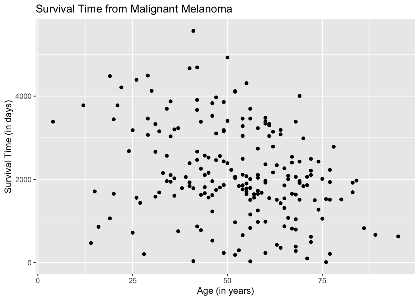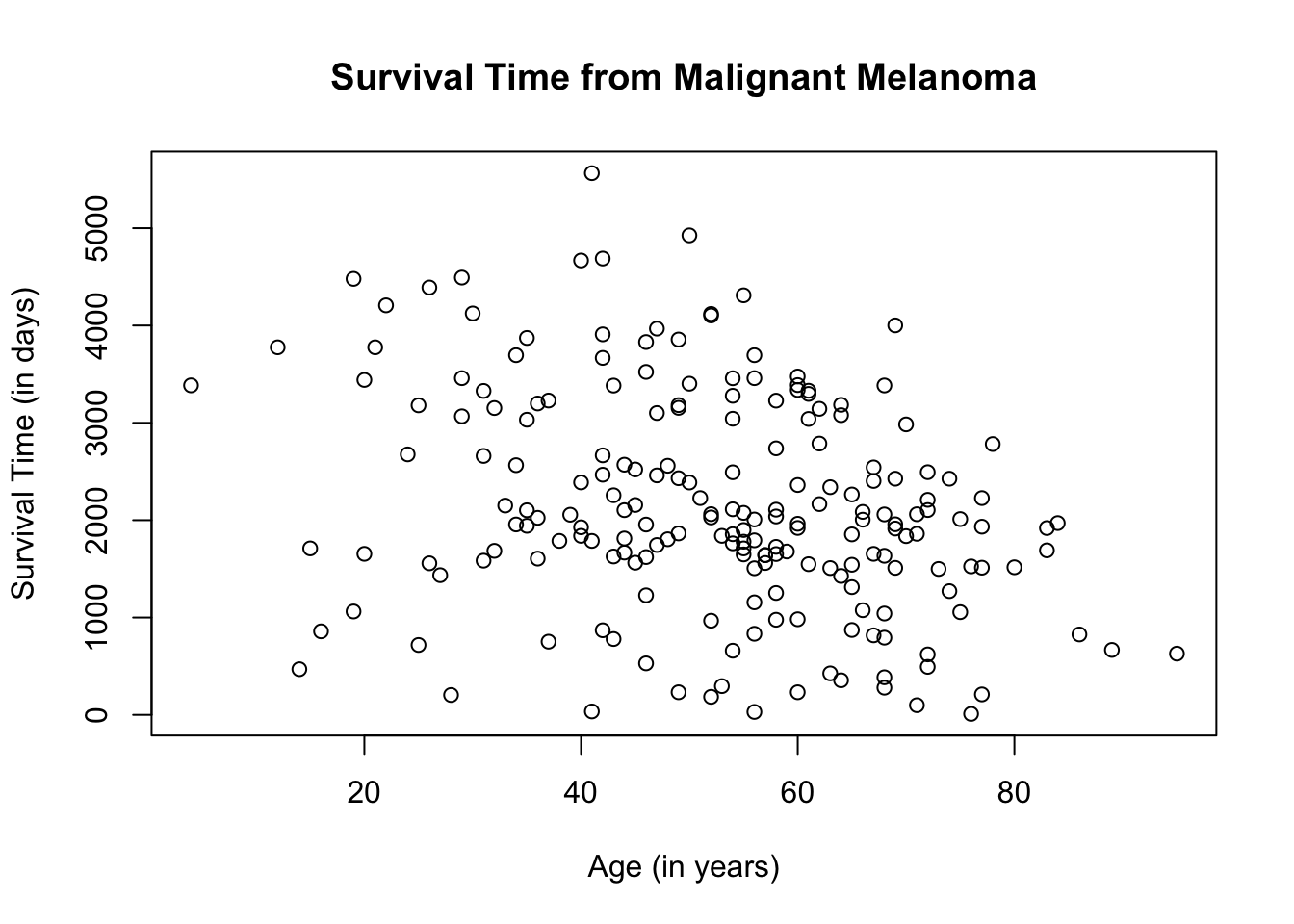 plot(Melanoma$age, Melanoma$time,