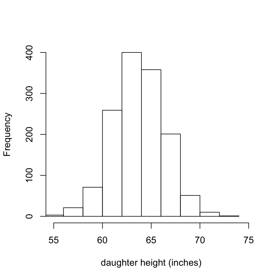 - Since most points fall above line \(y=x\) most daughters are taller.