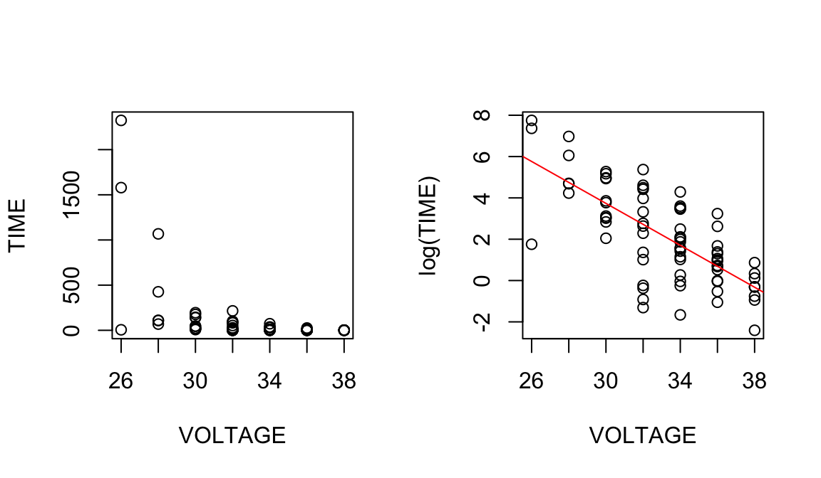 anova(lm(log(TIME)~VOLTAGE))## Analysis of Variance Table