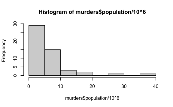 surdonde almacenes los datos filtrados del total de asesinatos que ocurrieron en la región sur. Luego, crea un histograma del vectorsur.
