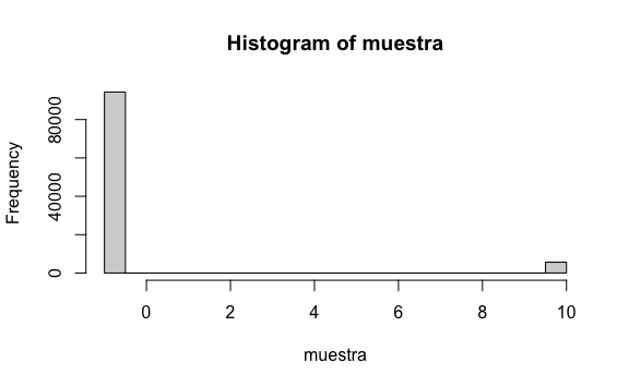 muestra <- sample(c(10, -1), jugadas, replace = TRUE, prob = c(prob_gana, prob_pierde))