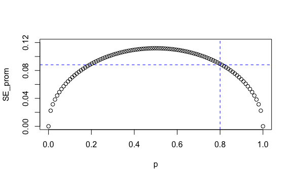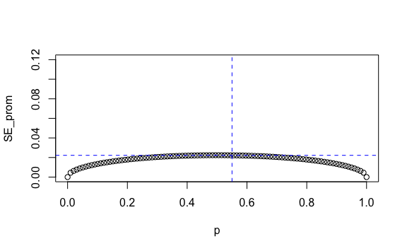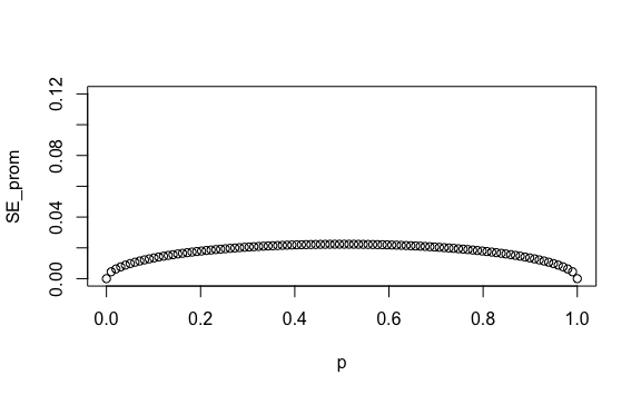 \(SE[\overline{X}]=\sqrt{\frac{p(1-p) }{n}}\)