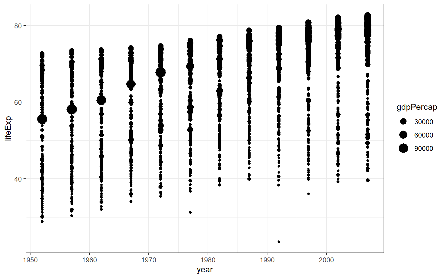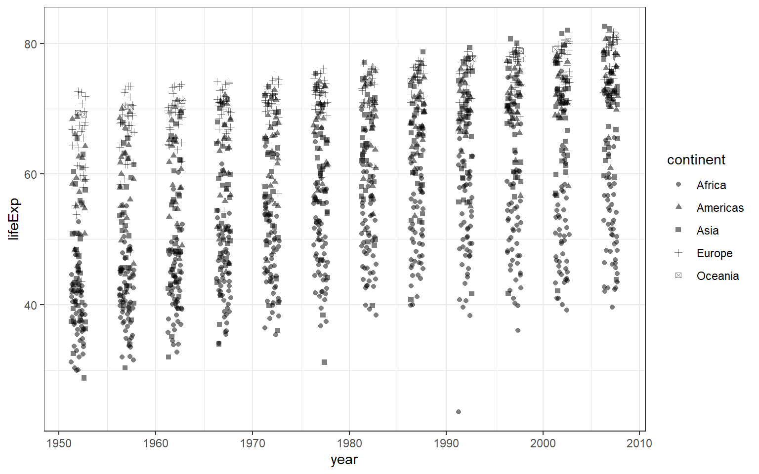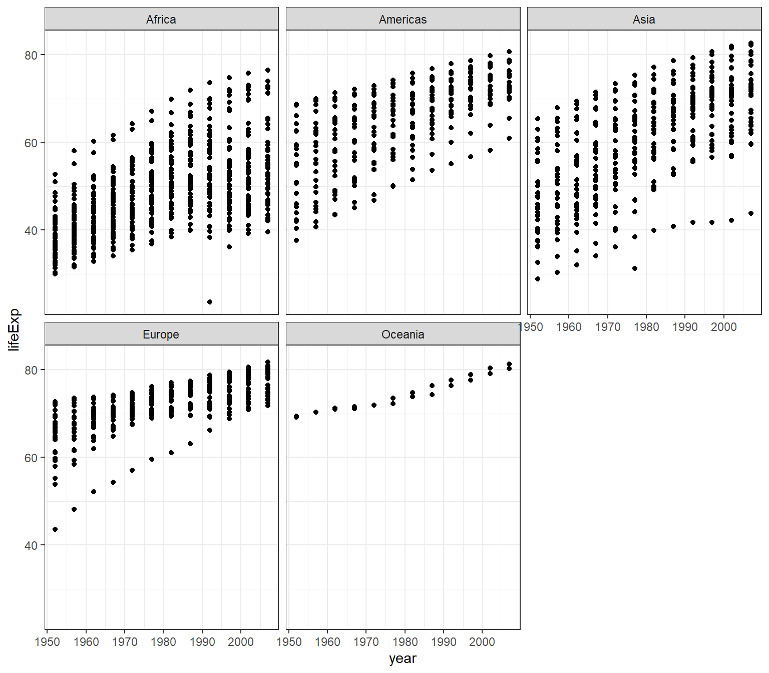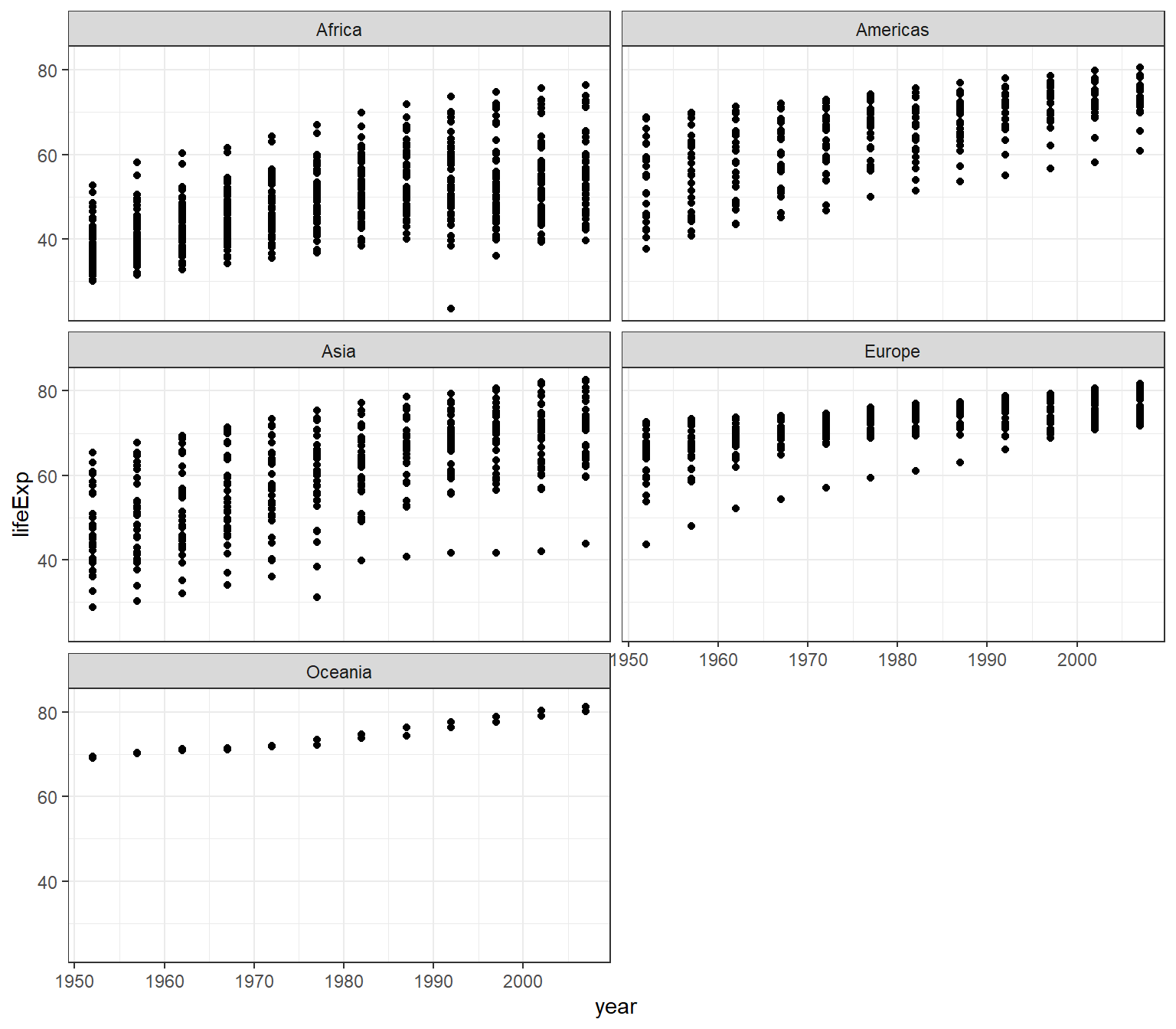 theme_bw()## Warning in geom_smooth(mapping = aes(line = continent), se = FALSE): Ignoring