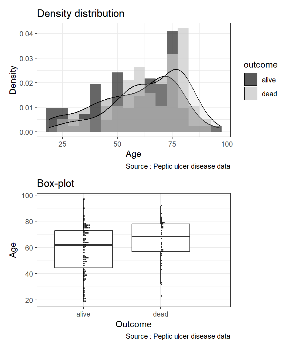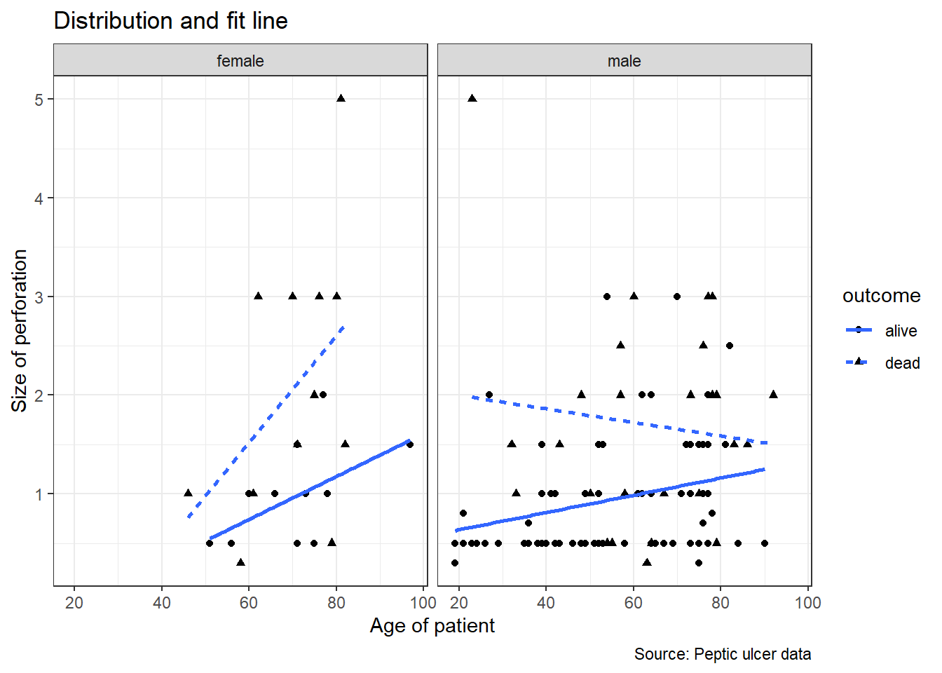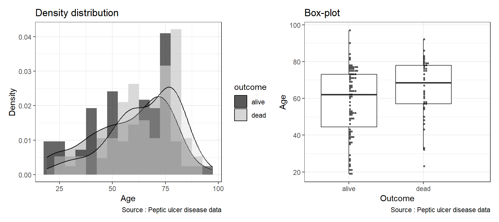 caption = 'Source: Peptic ulcer data') +
