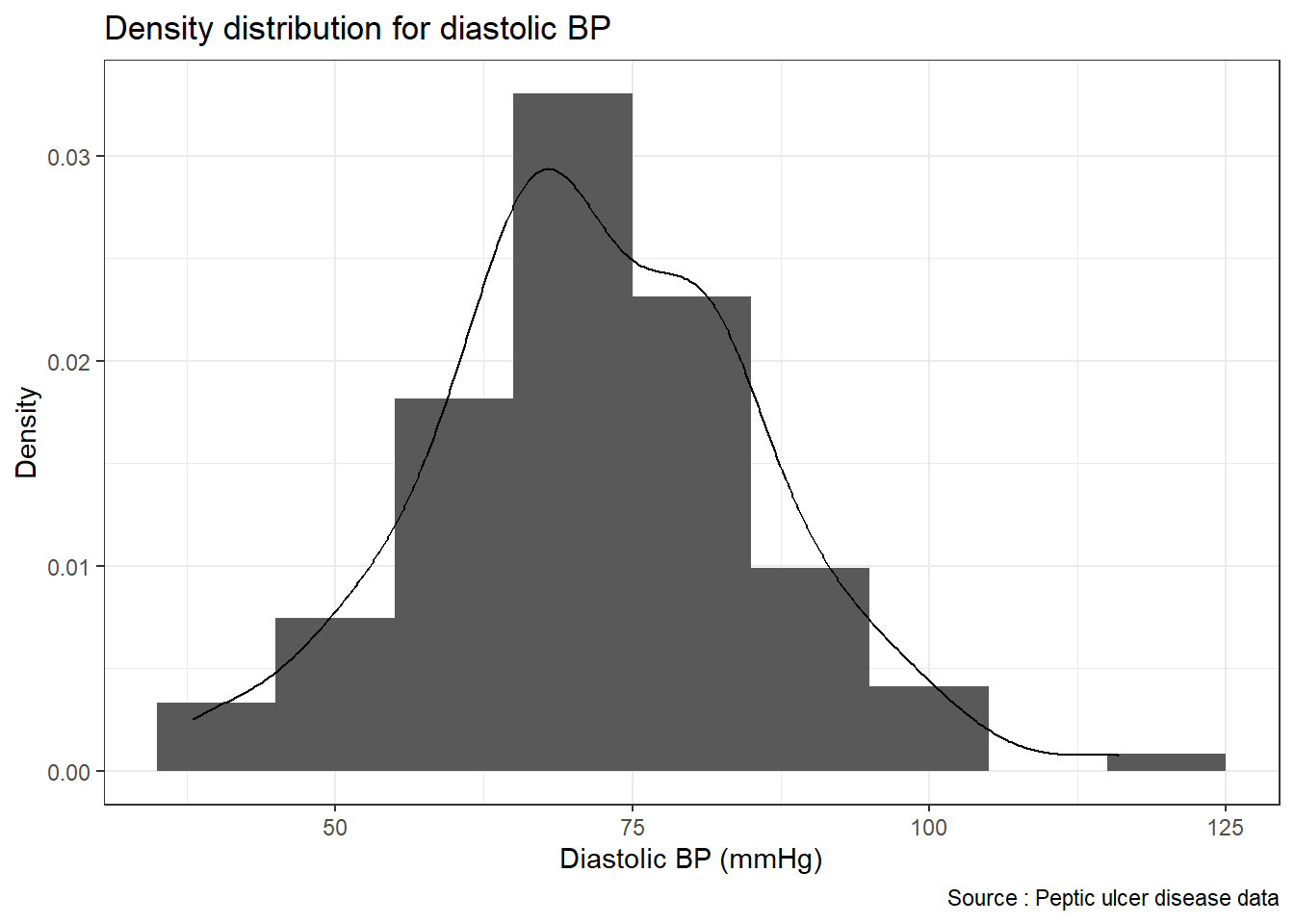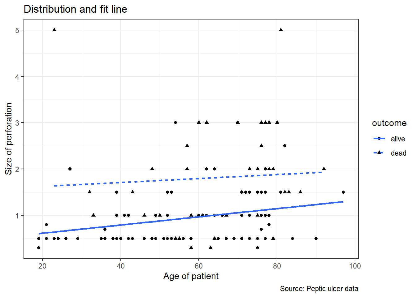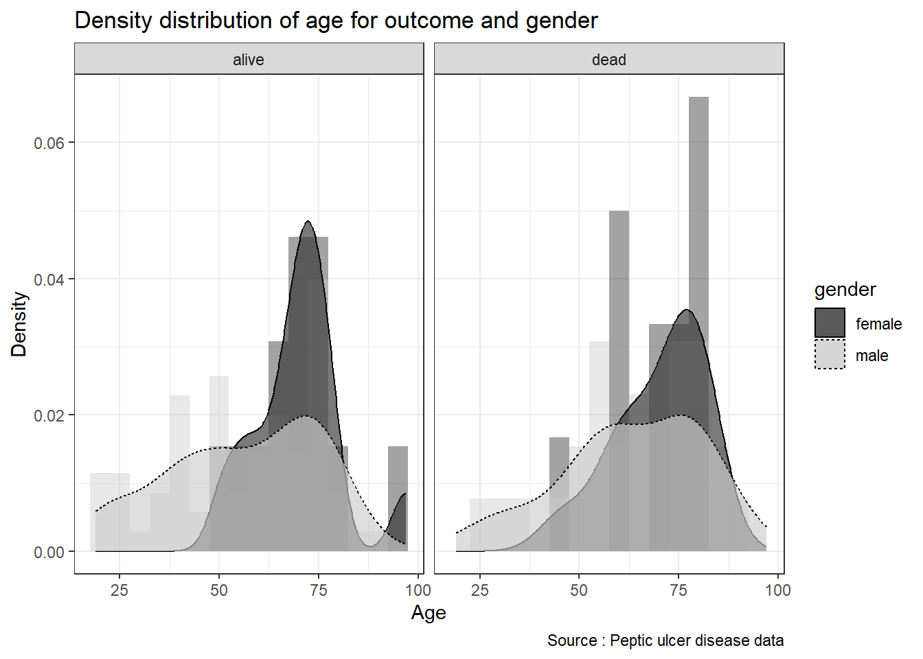 caption = 'Source: Peptic ulcer data') +