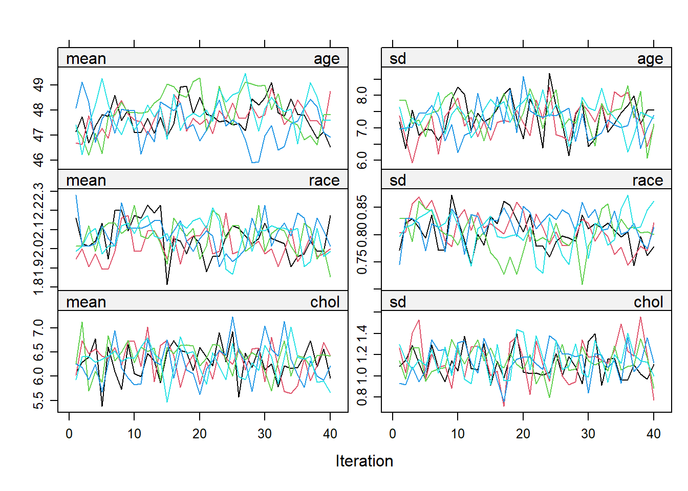 The line in the plot should be intermingled and free of any trend. The number of iteration can be further increased to make sure of this.