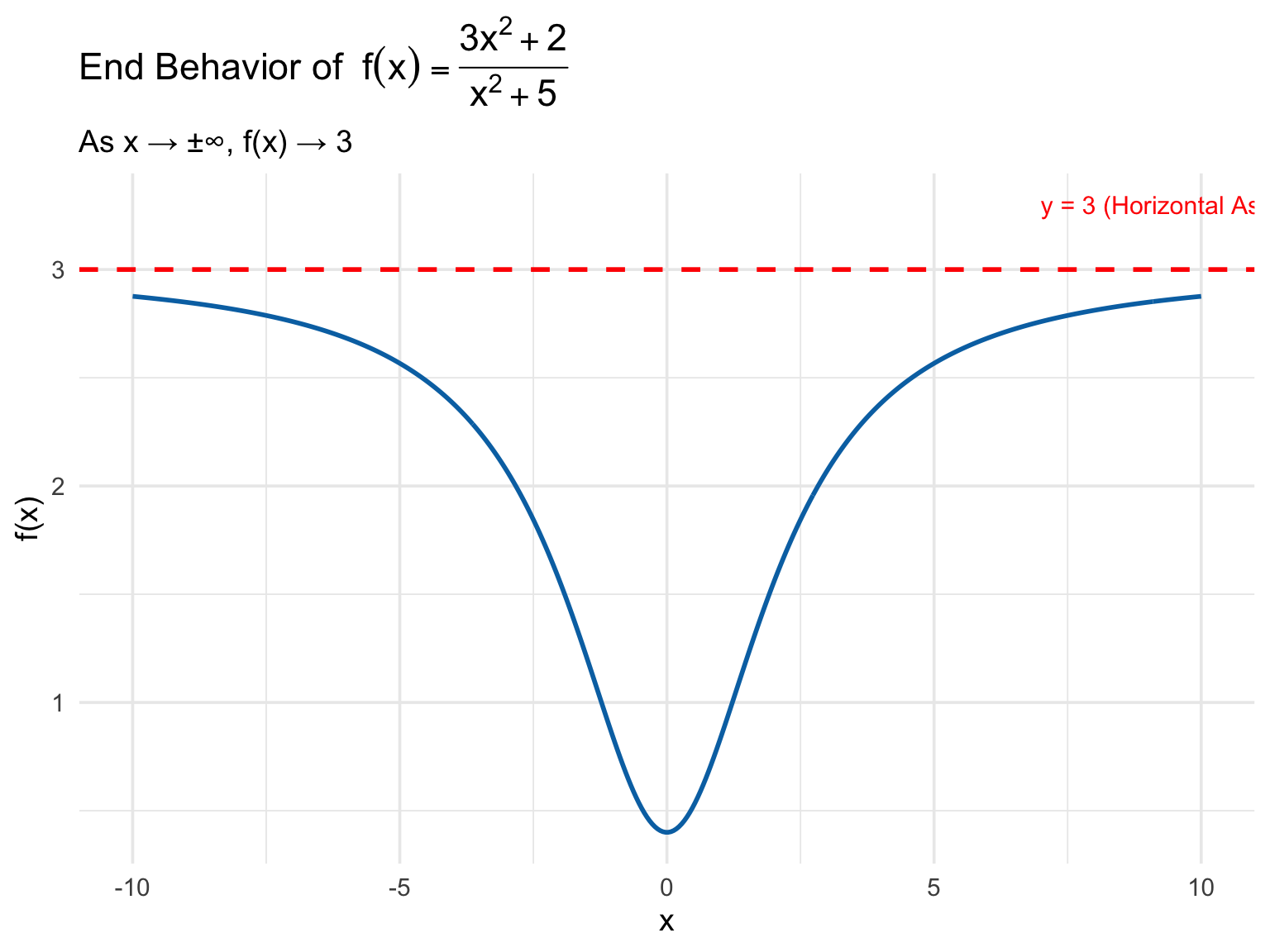 These describe the end behavior of a function as \(x\) becomes very large (\(x \to \infty\)) or very small (\(x \to -\infty\)). We are asking: “What value does \(f(x)\) approach as \(x\) goes to infinity?”