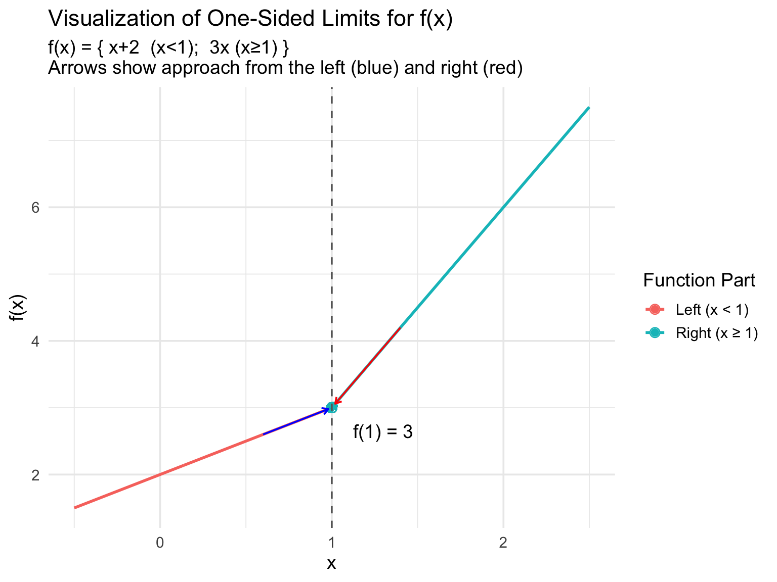 - \(\lim_{x \to 1^-} f(x) = 1 + 2 = 3\)