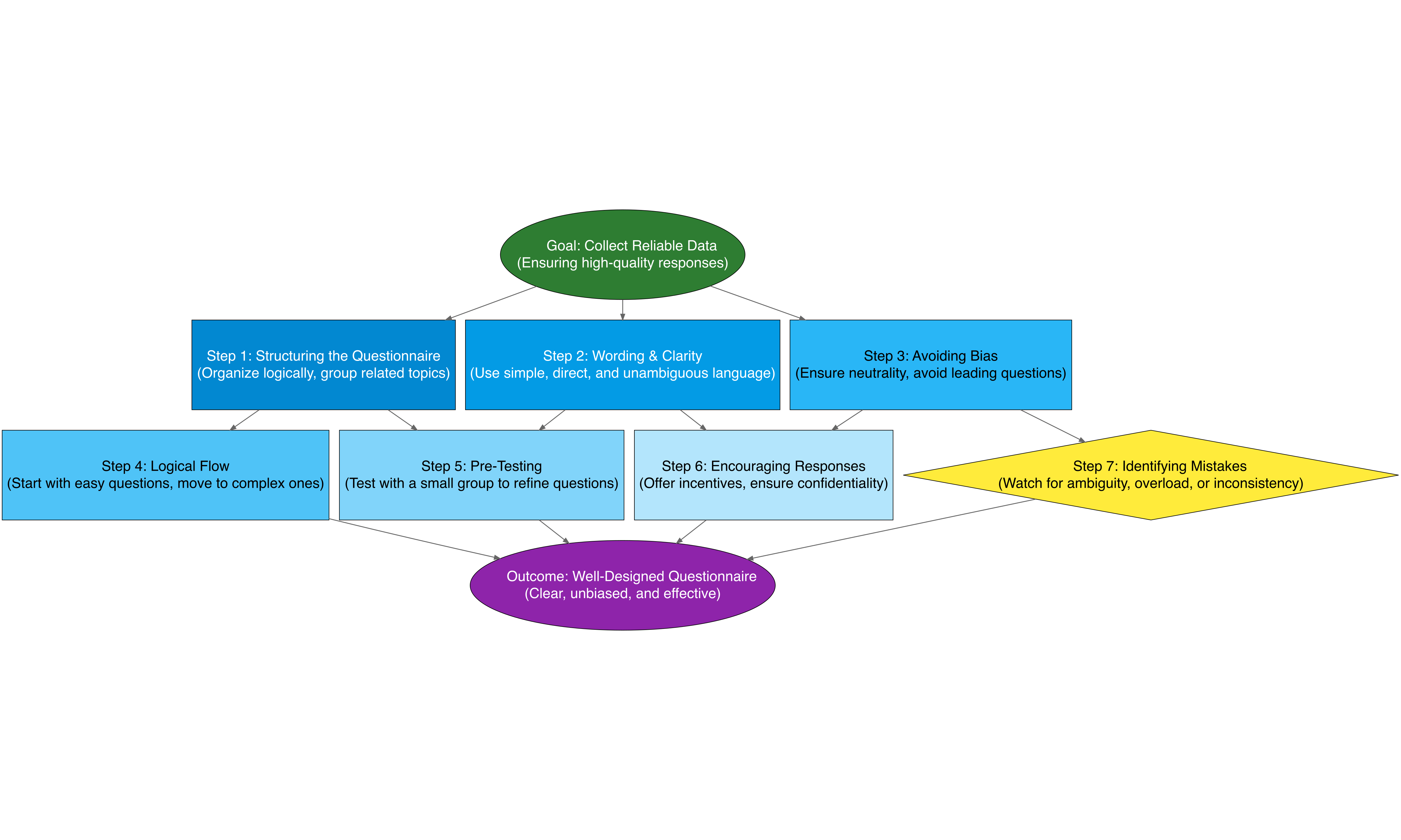 Designing an effective questionnaire is crucial for gathering accurate and meaningful data. A well-structured questionnaire ensures clarity, minimizes bias, and enhances response rates. This chapter covers the key aspects of questionnaire design, including different types of survey questions and best practices for structuring them. Before proceeding to the next level of this topic, please consider watching the following video.