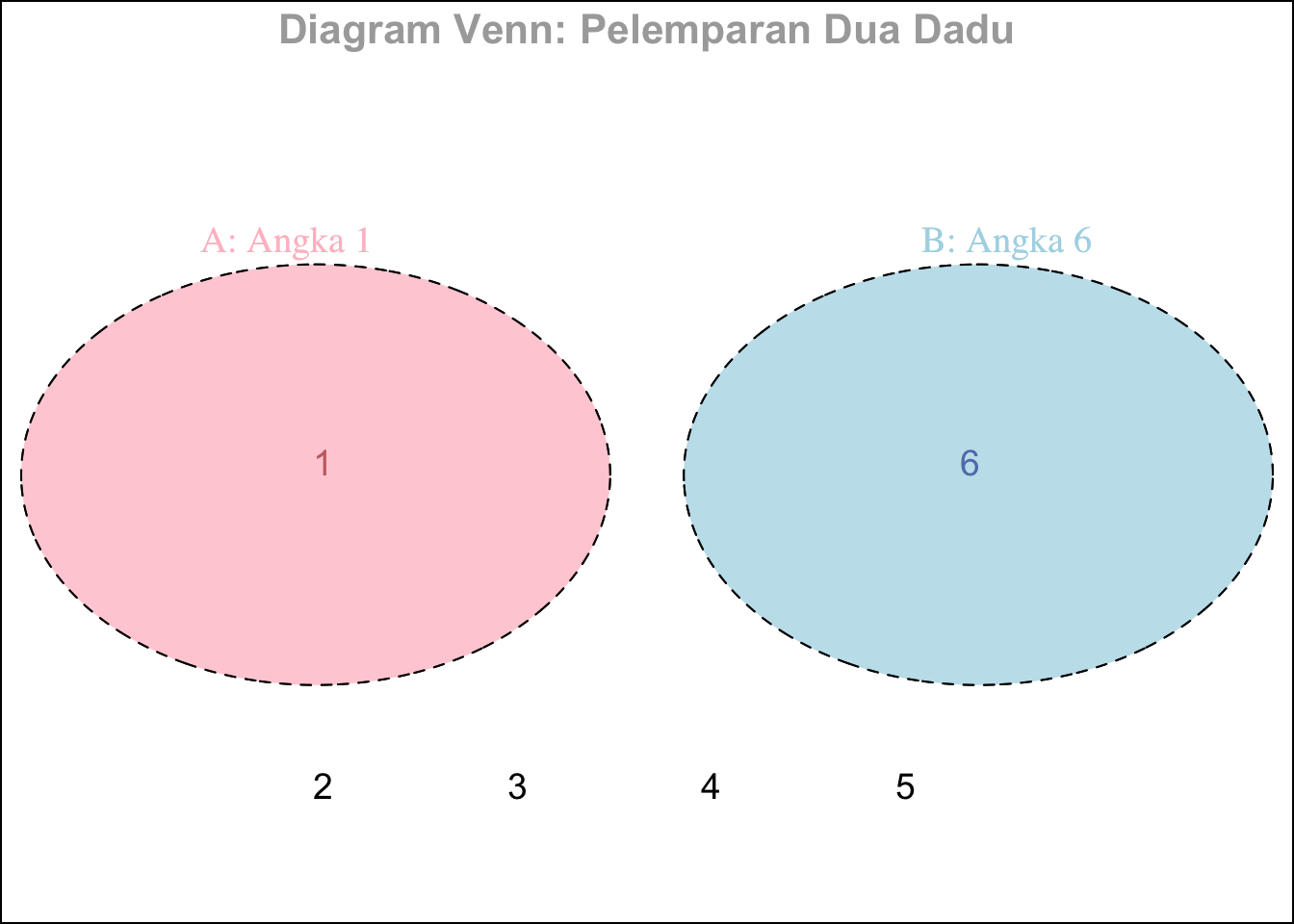 Kedua kejadian ini saling eksklusif, karena angka 1 pada dadu pertama dan angka 6 pada dadu kedua tidak bisa muncul bersamaan pada satu pelemparan.