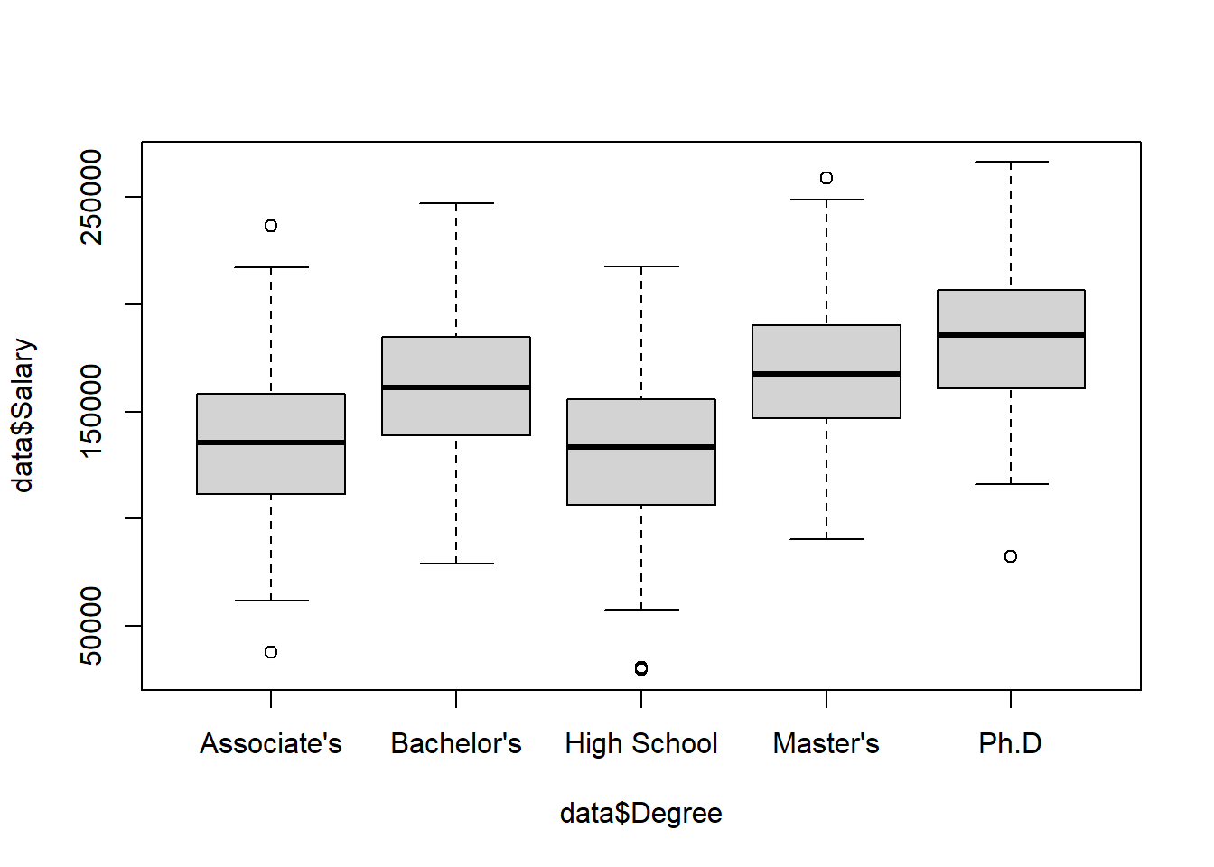 Alternatively, we can create a boxplot using the boxplot() function: