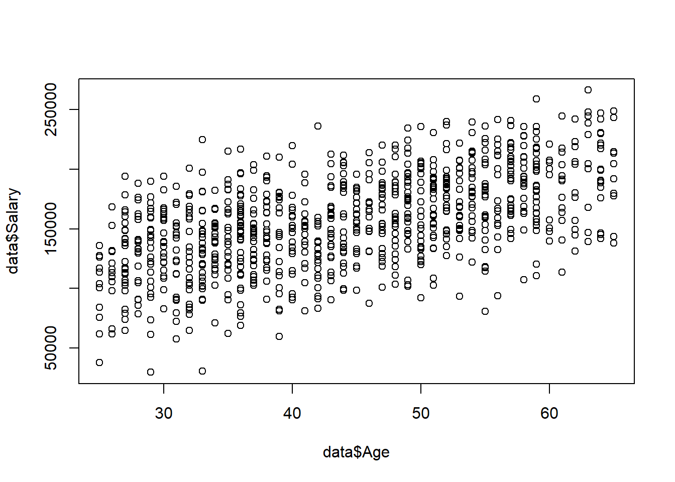 ## $ Age : int 51 34 50 52 55 62 47 43 27 30 ...