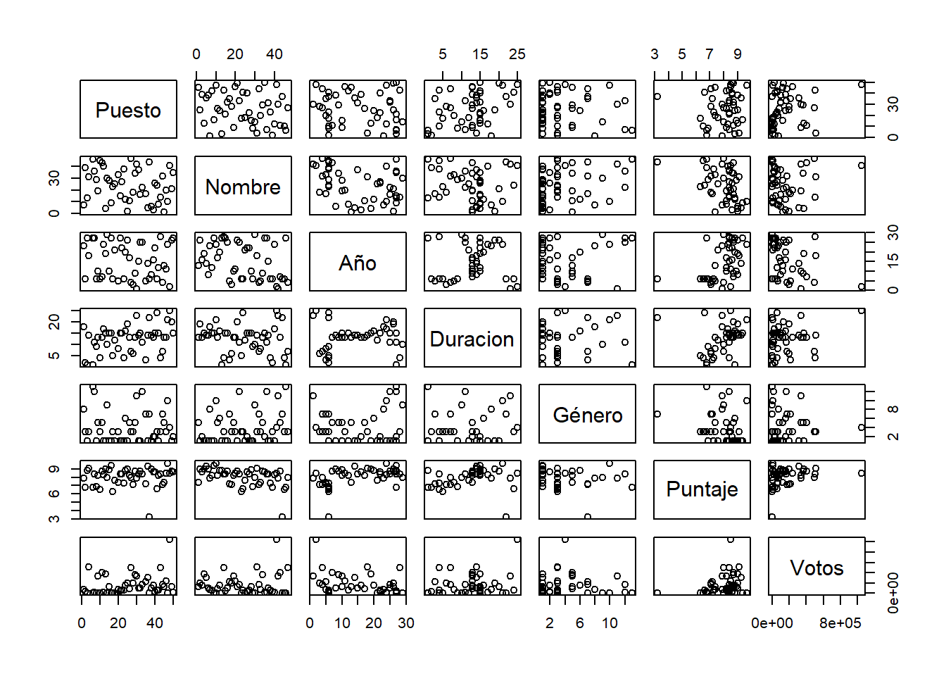 names(animacion)## [1] "Puesto" "Nombre" "Año" "Duracion" "Género" "Puntaje" "Votos"
